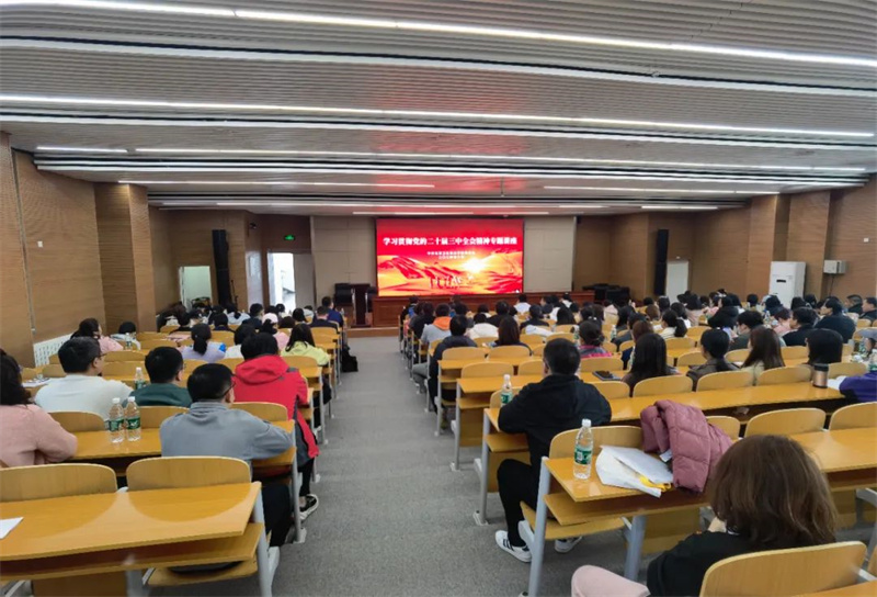 学习贯彻落实党的二十届三中全会精神是当前和今后一个时期的一项重大政治任务,为引导广大党员干部群众把思想和行动统一到党的二十届三中全会精神上来,把智慧和力量凝聚到落实全会确定的各项任务上来,推动学校高质量发展,10月23日学校分两个会场组织开展党的二十届三中全会精神专题讲座,全体教职员工参加了讲座,讲座由党委办公室主任李江主持。