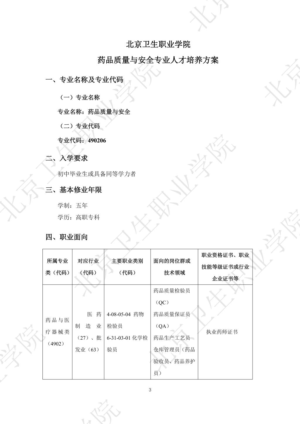 2025版药品质量与安全专业五年制人才培养方案