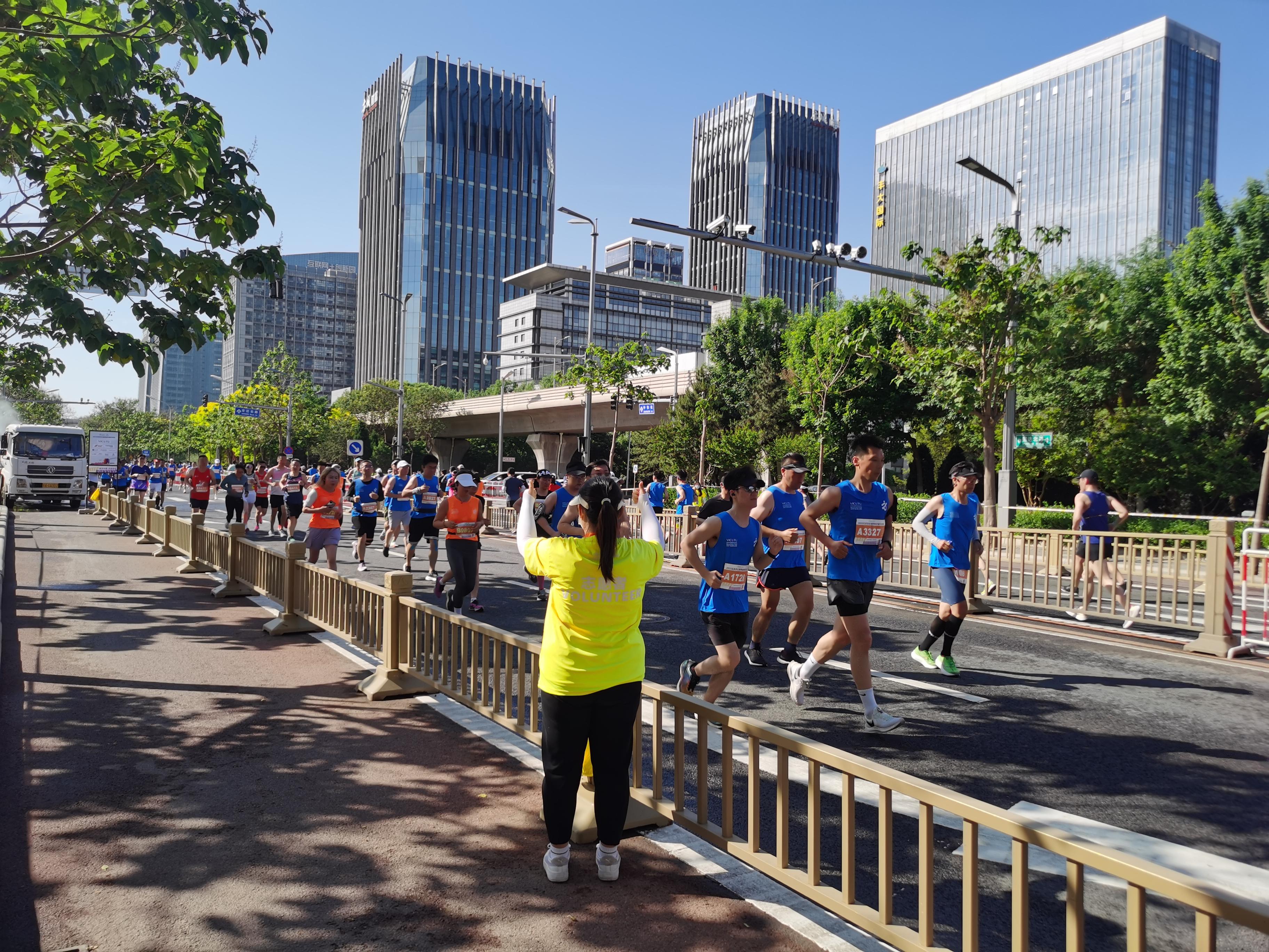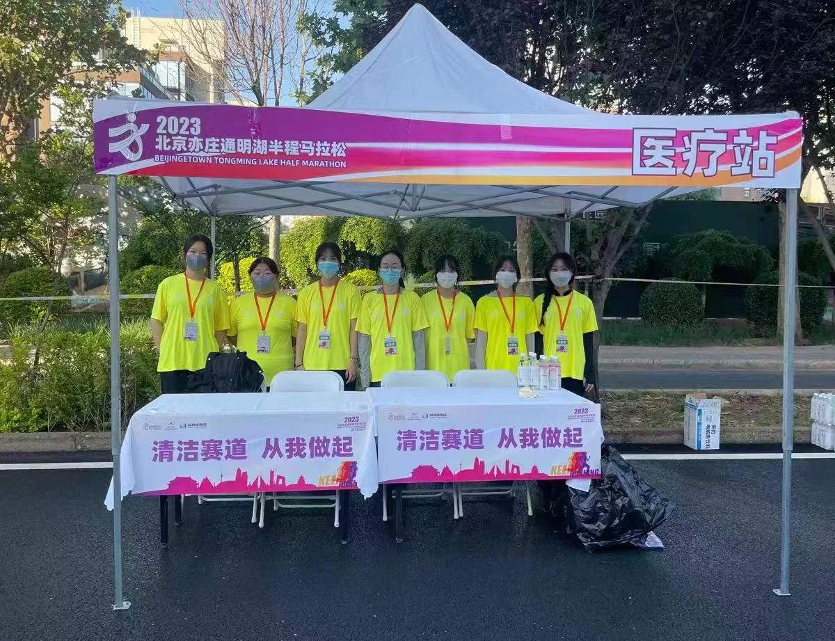 5月13日,必赢300名志愿者来到亦庄通明湖,参加了由北京经济开发区管委会主办的2023北京亦庄通明湖半程马拉松竞赛医疗志愿服务。
